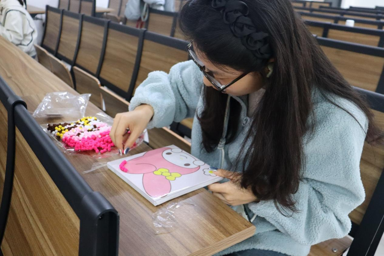 此次活动以“巧手生花,绽放她能量”为主题,由信息院权益服务部主办,面向信息院全体女生开展。活动前期,工作人员提前准备串珠、毛球画、油画小熊、不织布等多种手工材料,并按类别分区域摆放。活动现场,同学们在材料领取处有序签到,并根据个人兴趣自主选择手工材料。随后,大家开始动手制作小画框、香薰、美甲等创意作品。制作过程中,同学们彼此交流制作技巧,互帮互助、分工协作,共同分享创作思路,完成各类手工作品。工作人员全程核对物资发放情况,为参与同学提供指导与帮助,答疑解惑,并及时补充活动材料,以保障活动顺利推进。