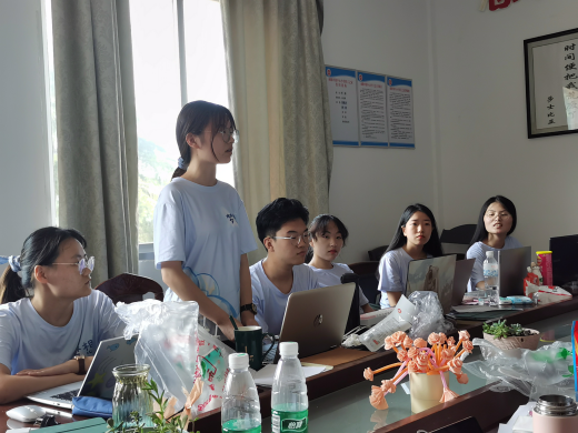 实践团成员们对于老师们的到来表达了欢迎,感谢老师们带来的鼓励和慰问物资。随后,每位同学都进行了自我介绍,表达了支教四天以来的工作和生活感受。同学们表示,经过几天的工作,已经逐步适应了雨敞坪镇小学的工作和生活,和学生们相处愉快,支教也是一个和学生互相进步的过程。付帅也表示了对于实践团成员前来支教的感谢,表扬了队员们迅速融入雨小的教学生活的适应能力。何琴表达了对于同学们的鼓励,并对大家的调研任务提出了一点建议。最后,孙雯波进行了总结,对雨敞坪小学给予的实践机会表示感谢,表扬队员们不怕艰苦,融入支教生活的精神。同时,她也对实践团未来的工作提出了进一步的要求,强调了做好宣传工作的重要性,并表示希望通过学院影响力进一步帮助雨敞坪镇中心小学扩大知名度。