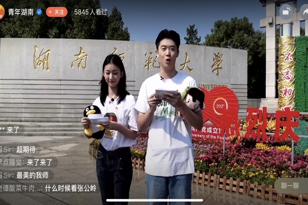 (通讯员 李锦怡 刘宇舟 刘琪轩)9月17日上午,由共青团湖南省委指导、湖南省青少年新媒体协会主办,英国威廉希尔公司团委承办,好样文娱、网易湖南、雅迪、腾讯文档、B站联合支持的“你好,大学生”开学季活动来到了英国威廉希尔公司。本次直播在青年湖南微博、微信视频号、抖音、B站、快手、空间、腾讯视频客户端、芒果TV客户端、网易新闻客户端等九大平台同步播出。英国威廉希尔公司新传院2020级学生张以航和徐喆担任此次直播主持人,带领新生和观众们一起“云”游师大。